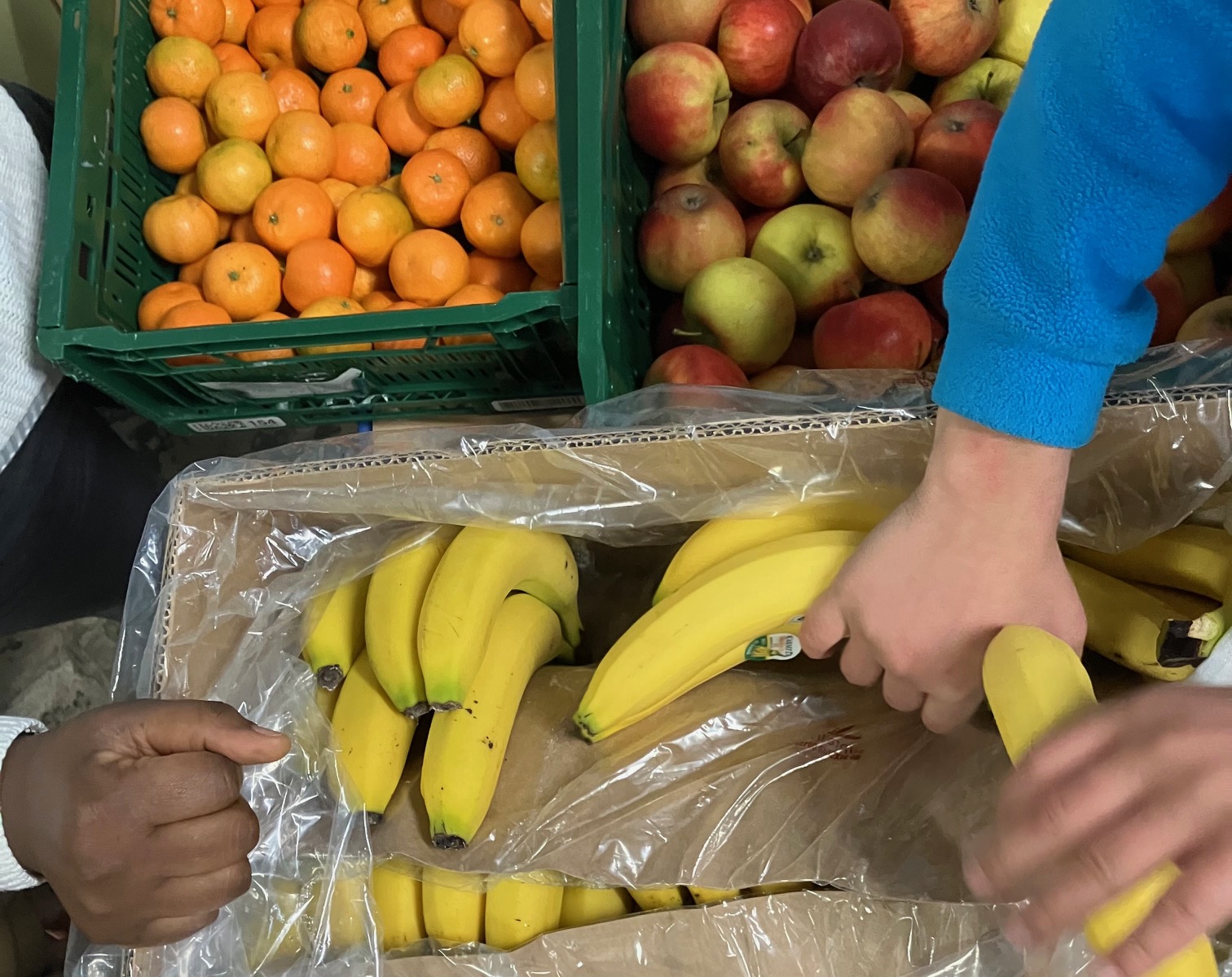 Im Rahmen des Programms erhalten wir wöchentlich frische Obstkisten, die an die Schüler/innen der unteren Jahrgänge verteilt werden.